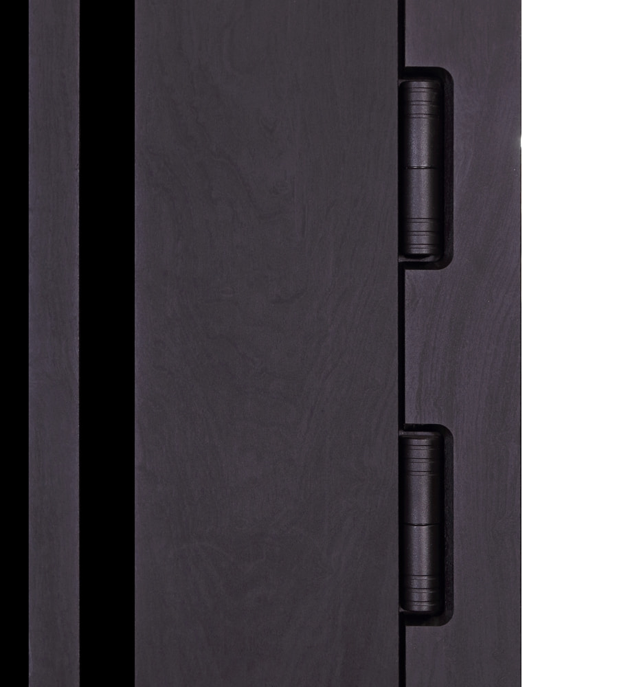 Revolut Doors В-85 (квадро), 850 праві — каркас пофарбований у колір Metalic Black – чорна. Зовнішня панель моделі – 559 чорний молдинг, внутрішня панель моделі – 191. ПВХ покриття виконане в кольорах: Зріз каменю та Білий матовий гладкий. Оснащені квадратною фурнітурою в чорному кольорі, замками Аріко та KALE, серійний номер дверей F1992.
