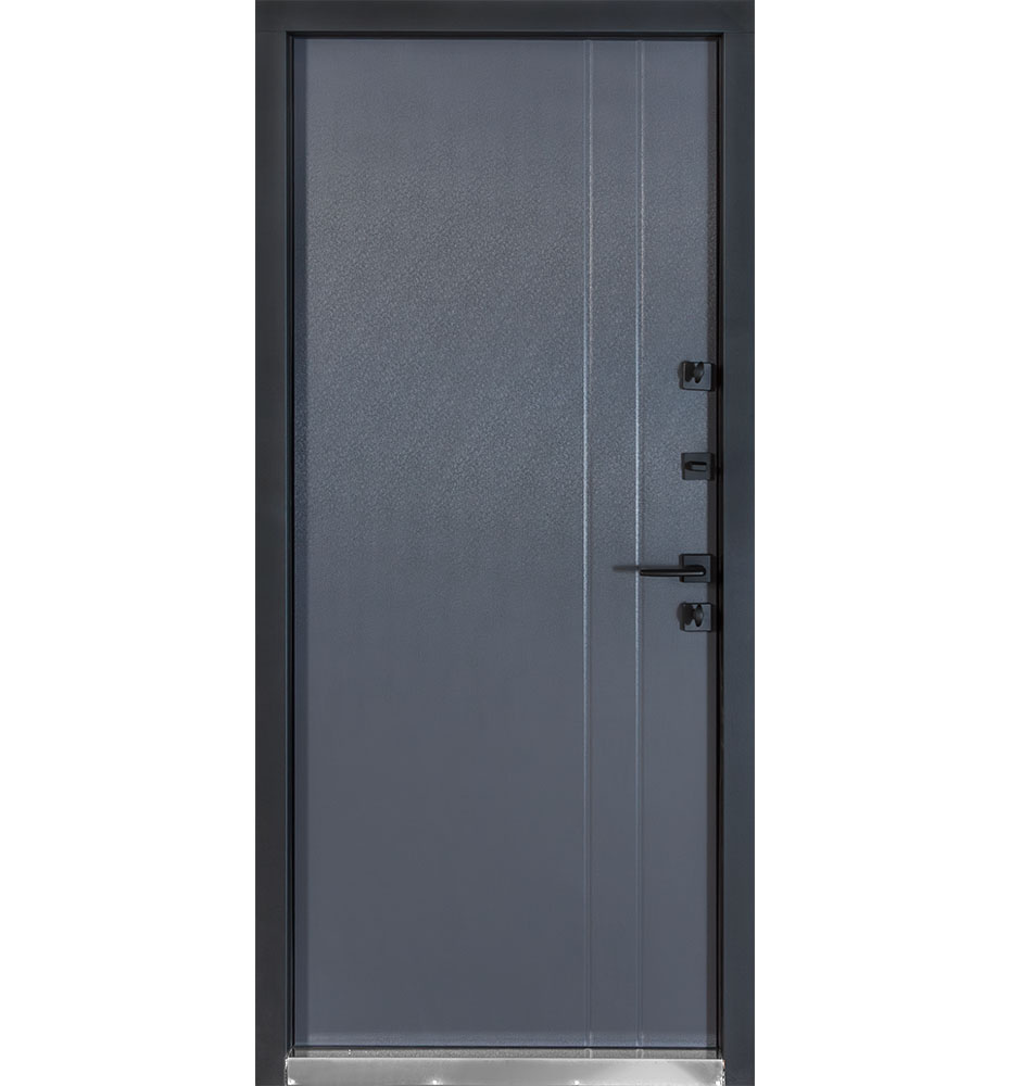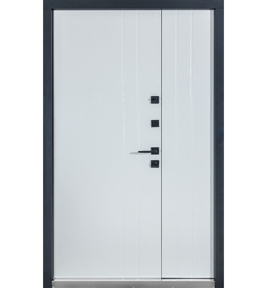 Булат Термо Європа 950 мм праві — каркас пофарбований у колір Metalic Black – чорна/Metalic White – біла. Нержавіючий поріг. Зовнішня панель моделі – металева сендвіч-панель модель 710, внутрішня панель моделі – 191. Колір зовнішнього покриття – Темний Антрацит. ПВХ покриття виконане в кольорі: Вулична Білий атласний. Оснащені квадратною фурнітурою в чорному кольорі, замками KALE, серійний номер дверей F0642.