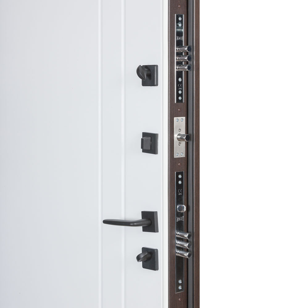 Форма дверної фурнітури квадратна, що надає дверям елегантності та стилю! Двері укомплектовані ручкою на розетці типу Smart Квадро з гальванічним покриттям, що захищає виріб від дії ультрафіолетового випромінювання та впливу погодніх умов.