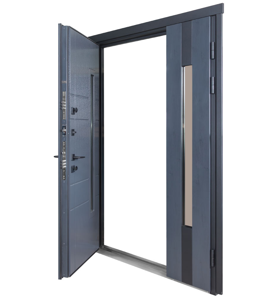 Полотно дверей має посилену конструкцію, що включає 15 ребер жорсткості та додаткові металеві кишені під замок. Товщина полотна становить 95 мм, а товщина листа металу на полотні – 1.2 мм. Це забезпечує міцність та стабільність дверей, а також підвищує її стійкість до зовнішніх впливів. Короб та полотно покриті порошковою фарбою яка забезпечує дверям довгий строк експлуатації та попереджає іржу.