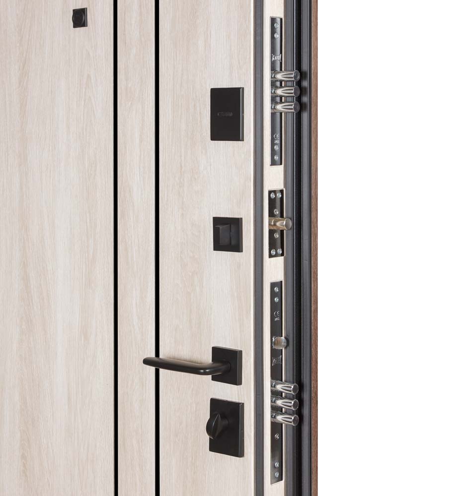 Двері оснащені трьома контурами ущільнення, що забезпечують відмінну тепло- та звукоізоляцію. Мінеральна вата покращує теплоізоляцію. Регулятор притвору забезпечує краще прилягання ущільнювача до коробки та не дозволяє зайвим шумам та неприємним запахам з під’їзду проникати у помешкання.
