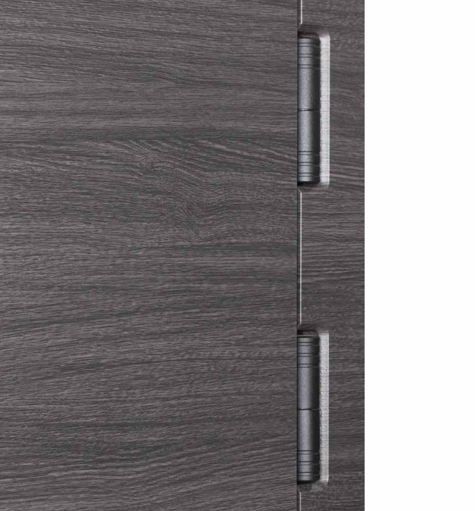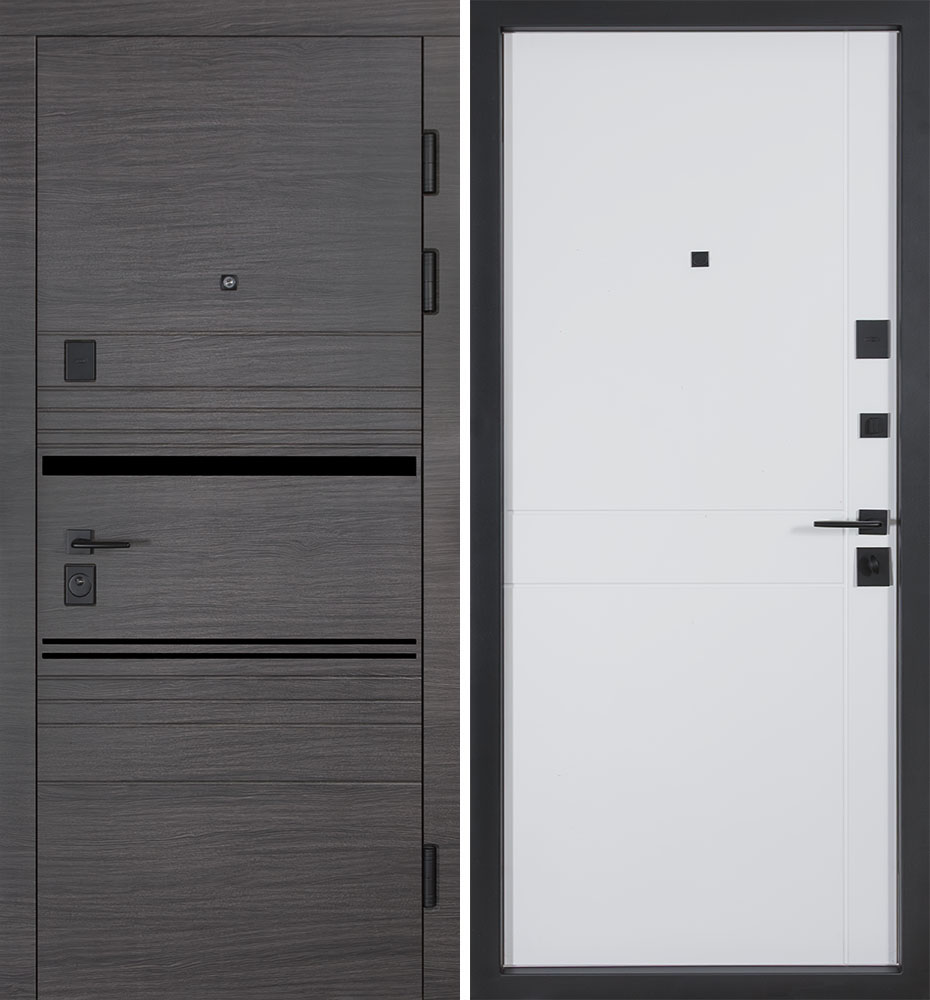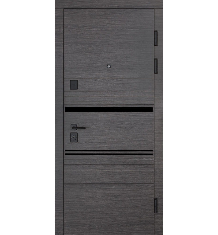 Ці двері виглядають сучасно та стильно завдяки використанню молдингів з композиту чорного кольору. Колір дверей ззовні – сірий, а в середені вони світлі, що додає їм елегантності.