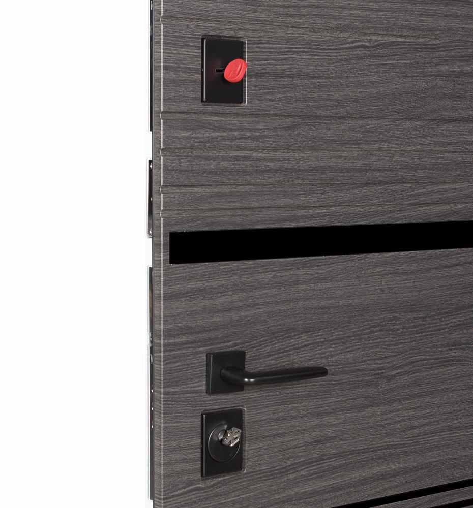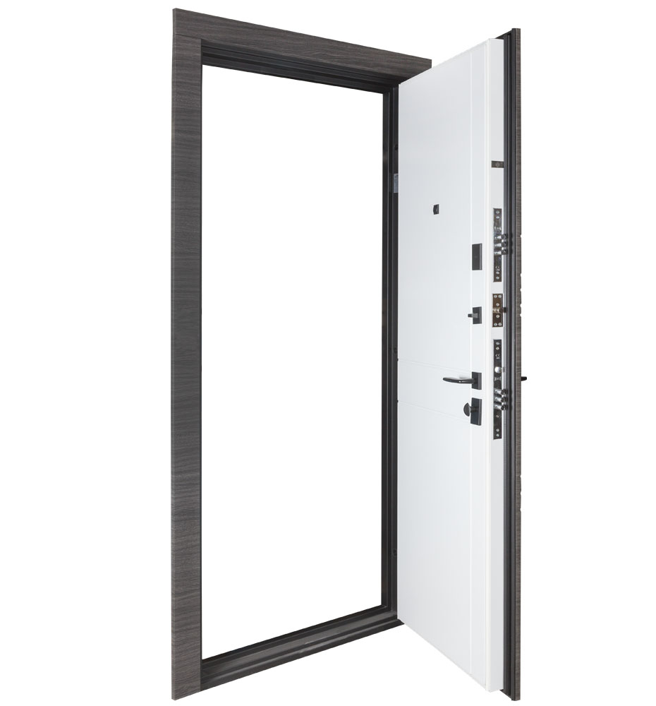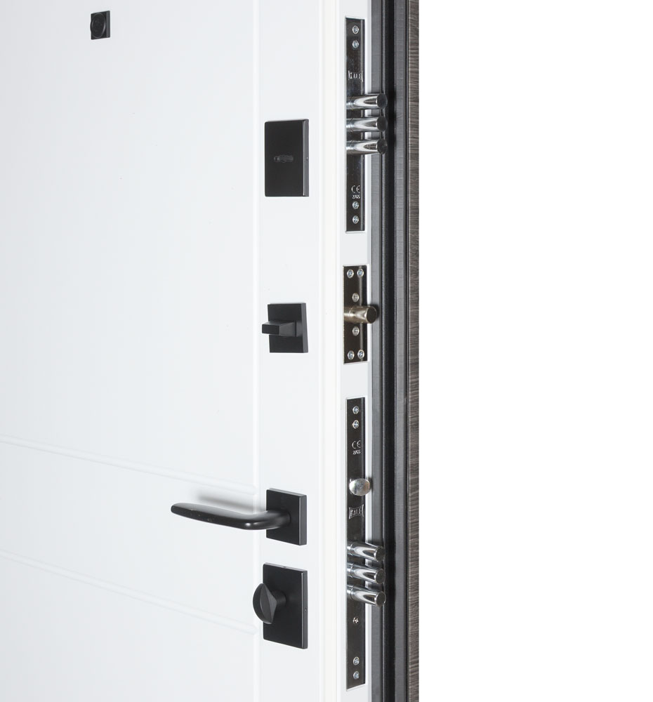 Двері оснащені трьома контурами ущільнення, що забезпечують відмінну тепло- та звукоізоляцію. Мінеральна вата покращує теплоізоляцію. Регулятор притвору забезпечує краще прилягання ущільнювача до коробки та не дозволяє зайвим шумам та неприємним запахам з під’їзду проникати у помешкання.