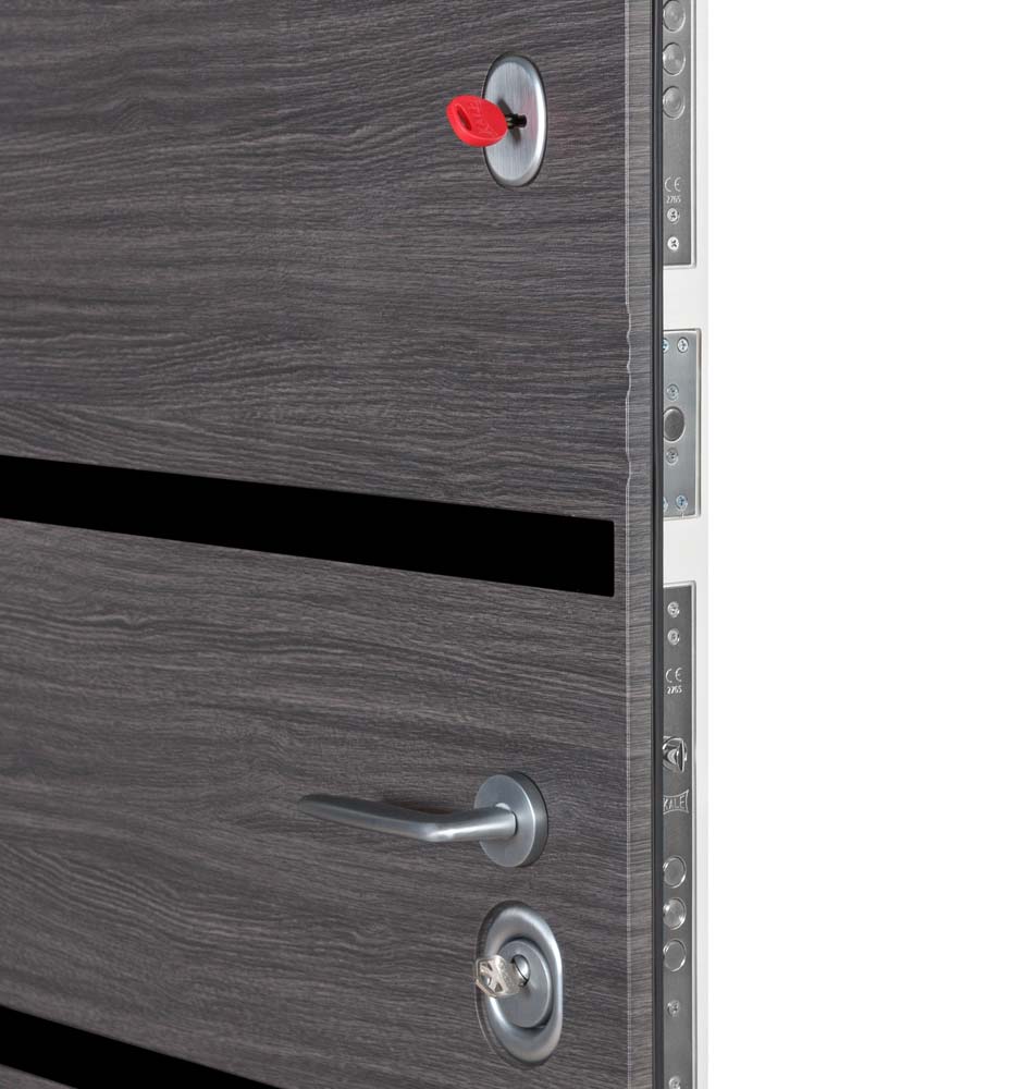 На дверях встановлений регулятор притвору Securemme (Італія), який регулює прижим дверного полотна до коробки і робить його щільнішим, та забезпечує плавне закривання дверей. Завдяки максимальному прижиму полотна до коробки та контурам ущільнення – ваша оселя буде захищена від шумів та поганих запахів з під’їзду!