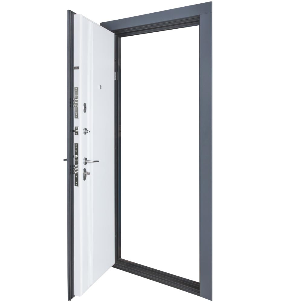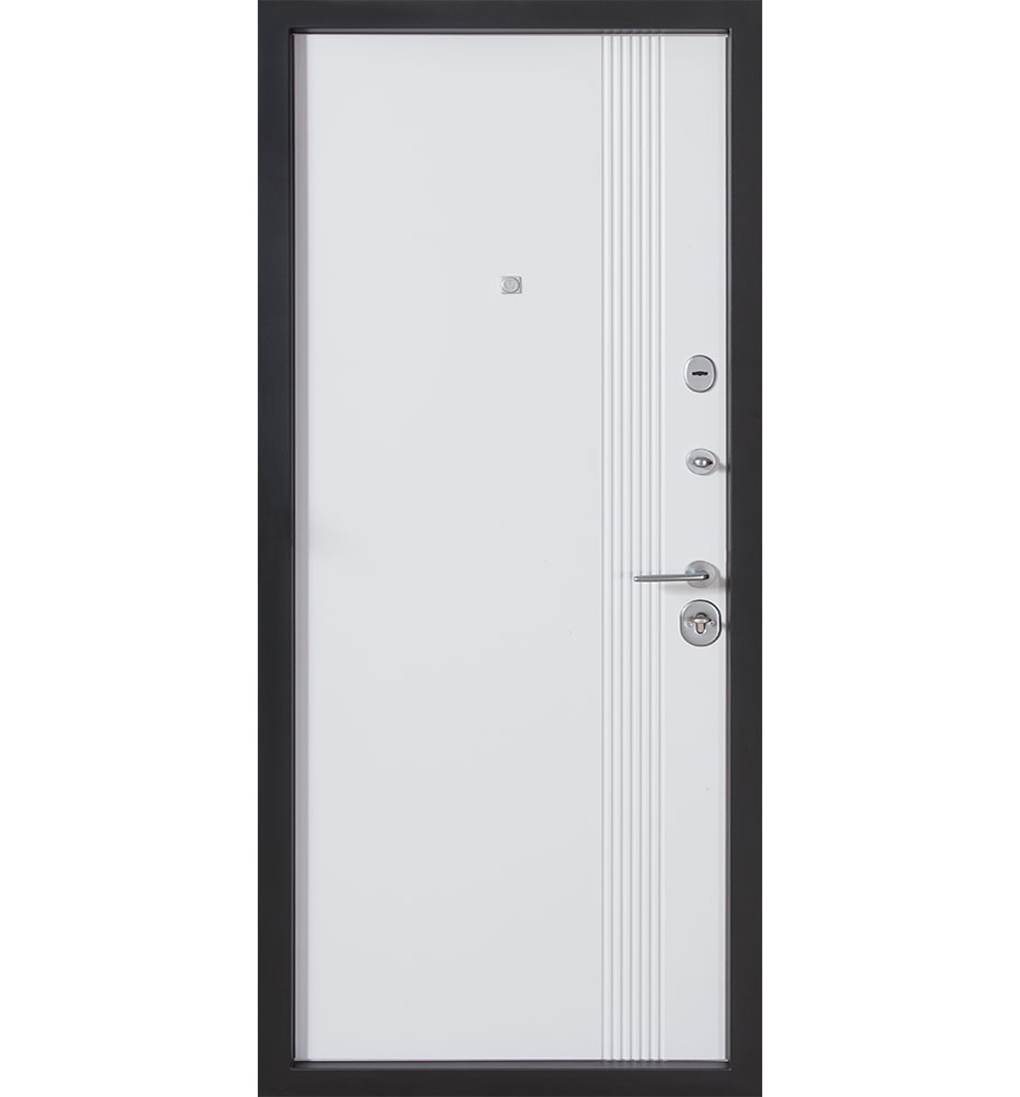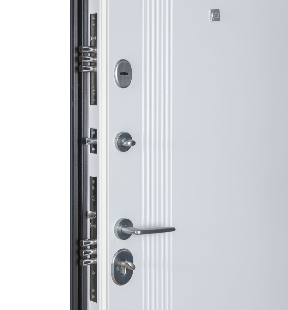 Дверне полотно утеплено мінеральною ватою та оснащено трьома контурами ущільнення, які збережуть тепло у квартирі та вбережуть помешкання від протягів і неприємних запахів з під’їзду. Регулятор притвору Securemme забезпечить дверям м’яке та щільне закривання.