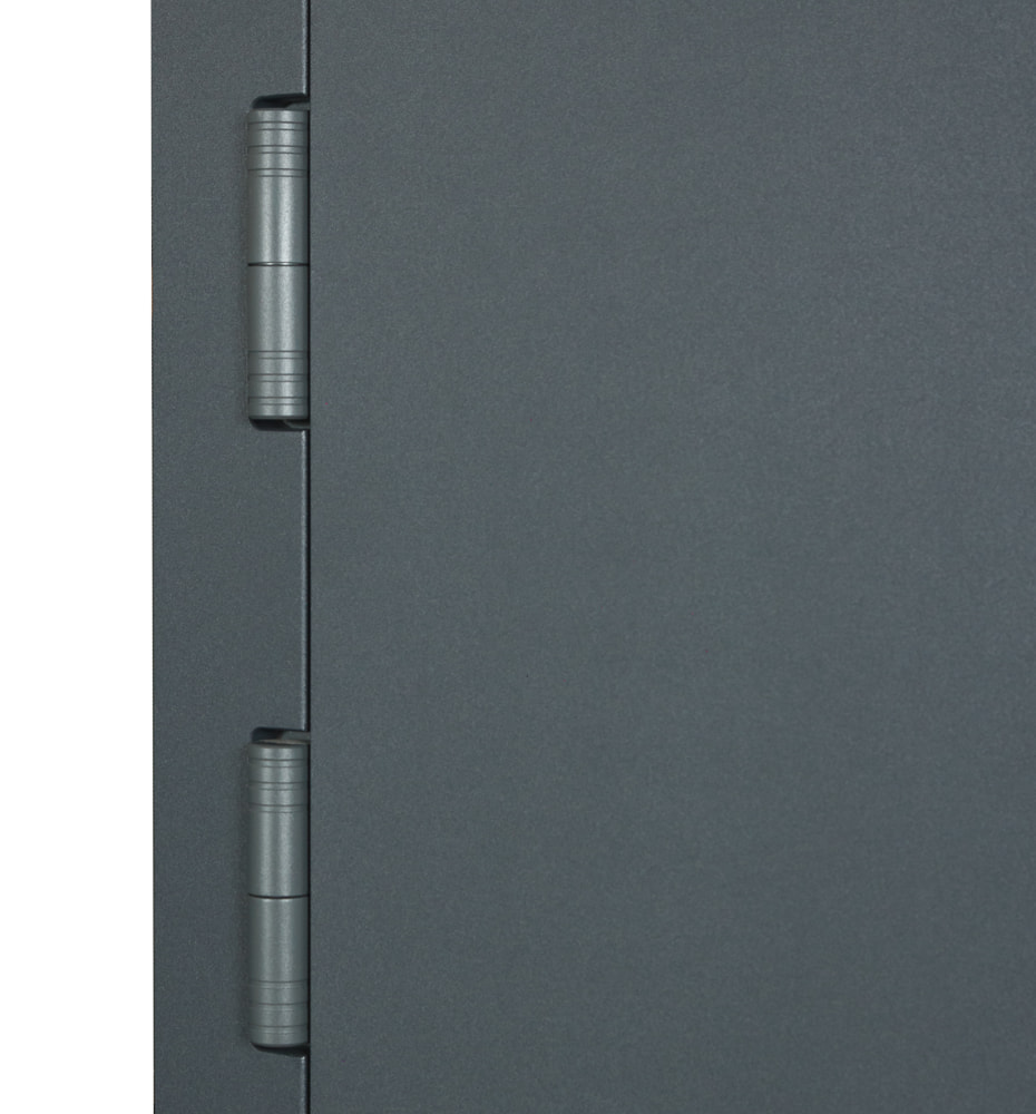 Двері виготовленні з холоднокатаної сталі. Товщина металу на коробці – 1.2 мм, товщина профіля металу на полотні 1,2 мм, товщина листа металу на полотні – 1 мм. На полотні встановлено три антизрізи для захисту петель від спилу.